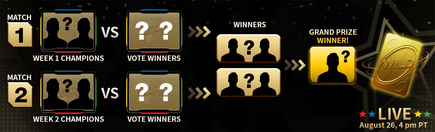 UNO! Mobile Wildcard Series: All-Stars will be livestreamed in a watch party within the UNO! Mobile app in this UNPREDICTABLE 3-week event. Qualifying rounds will be held on August 12 and 19 at 4:00 pm PDT where contestants will face off in teams of two. The finals will occur on August 26 at 4:00 pm PDT with a winner takes all showdown.